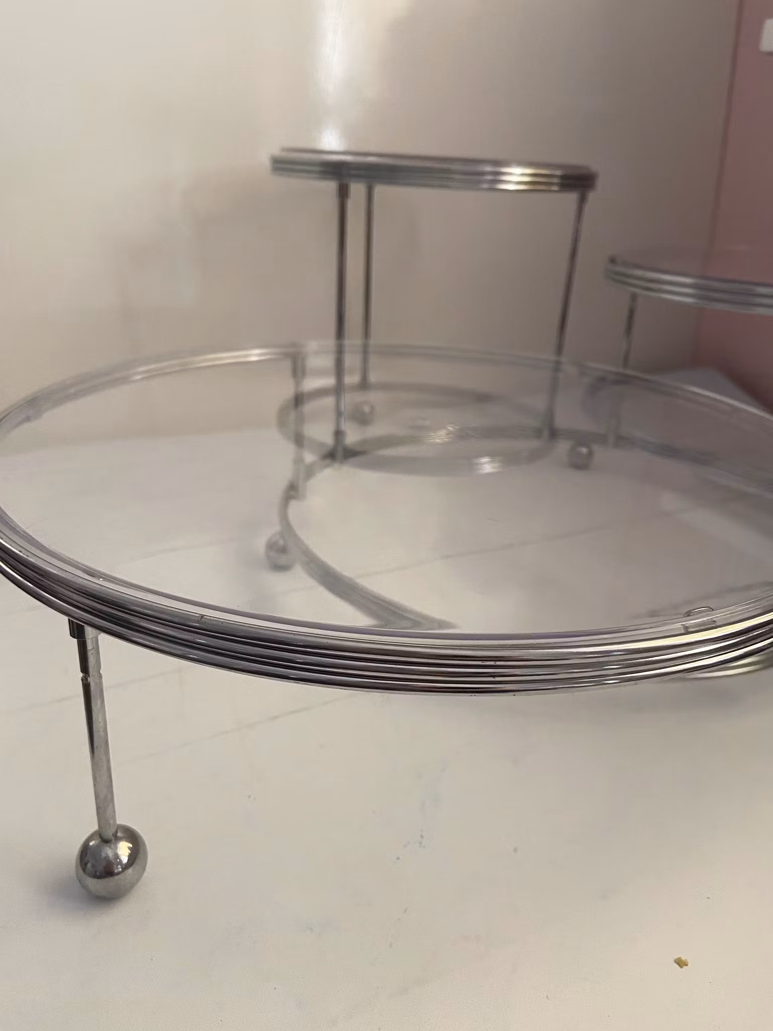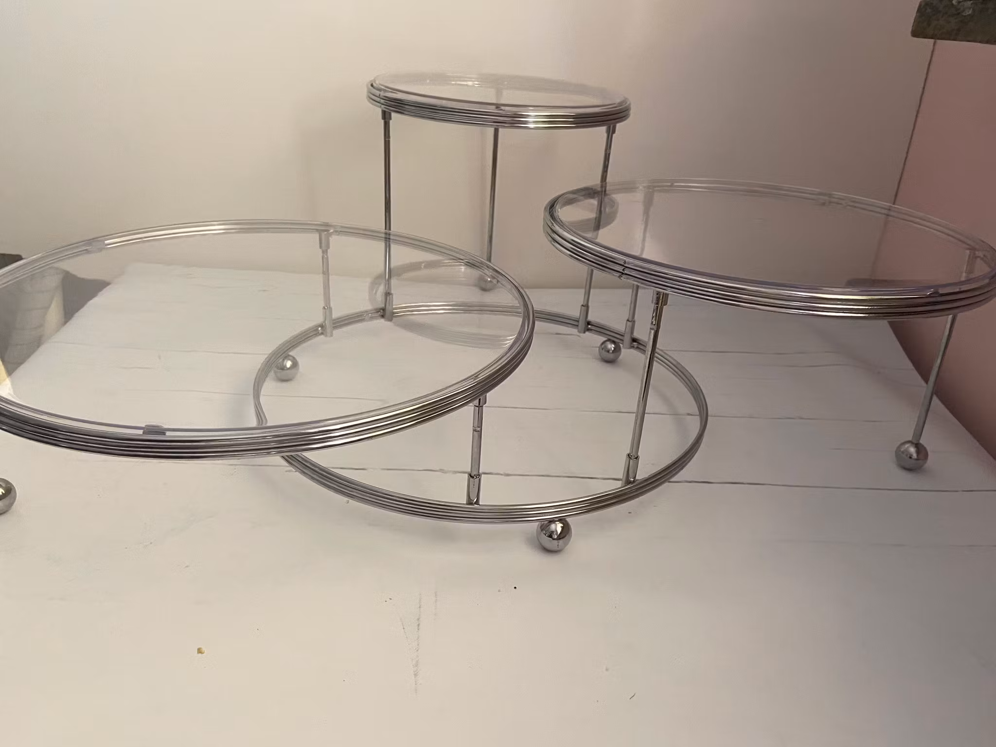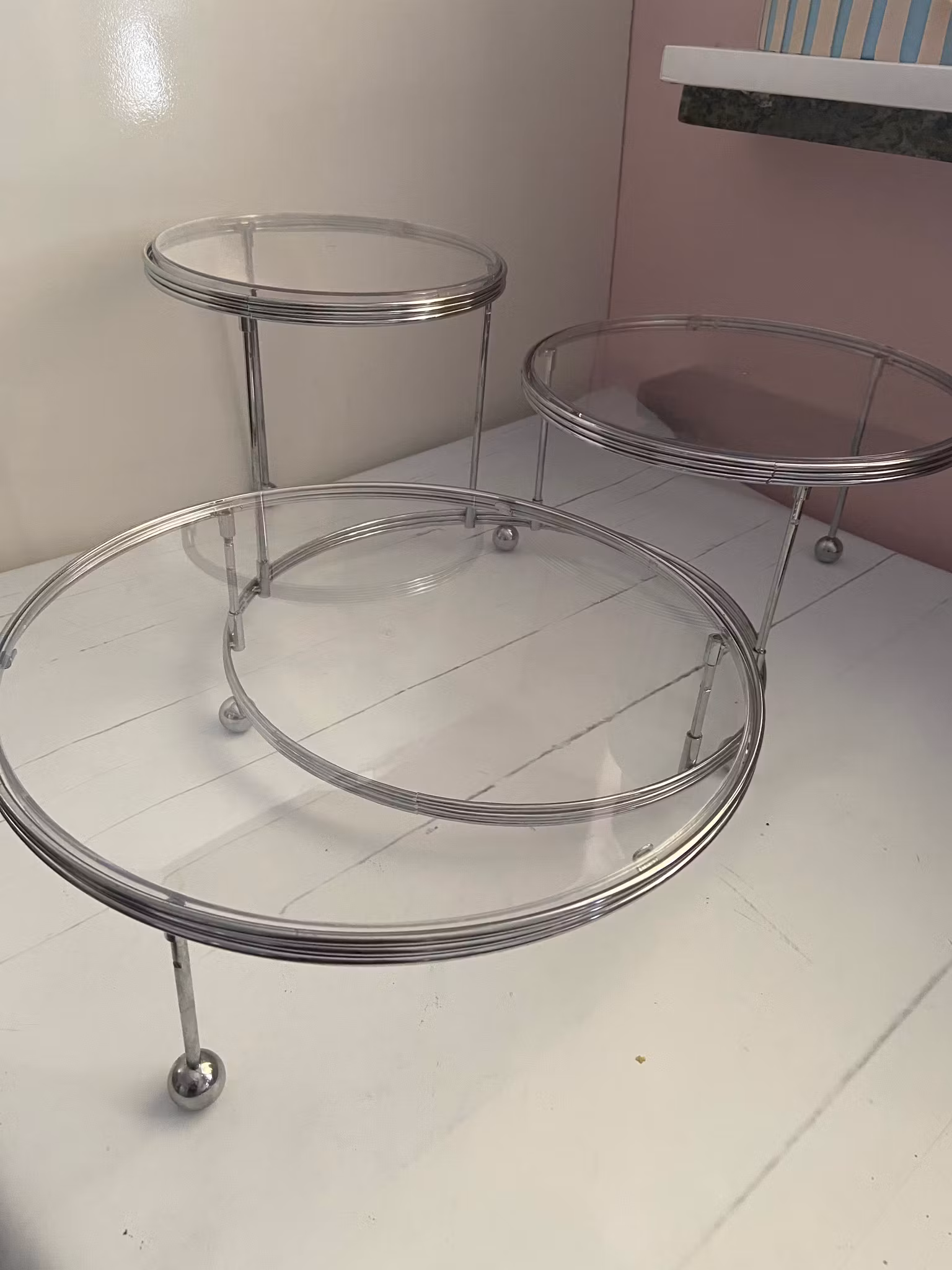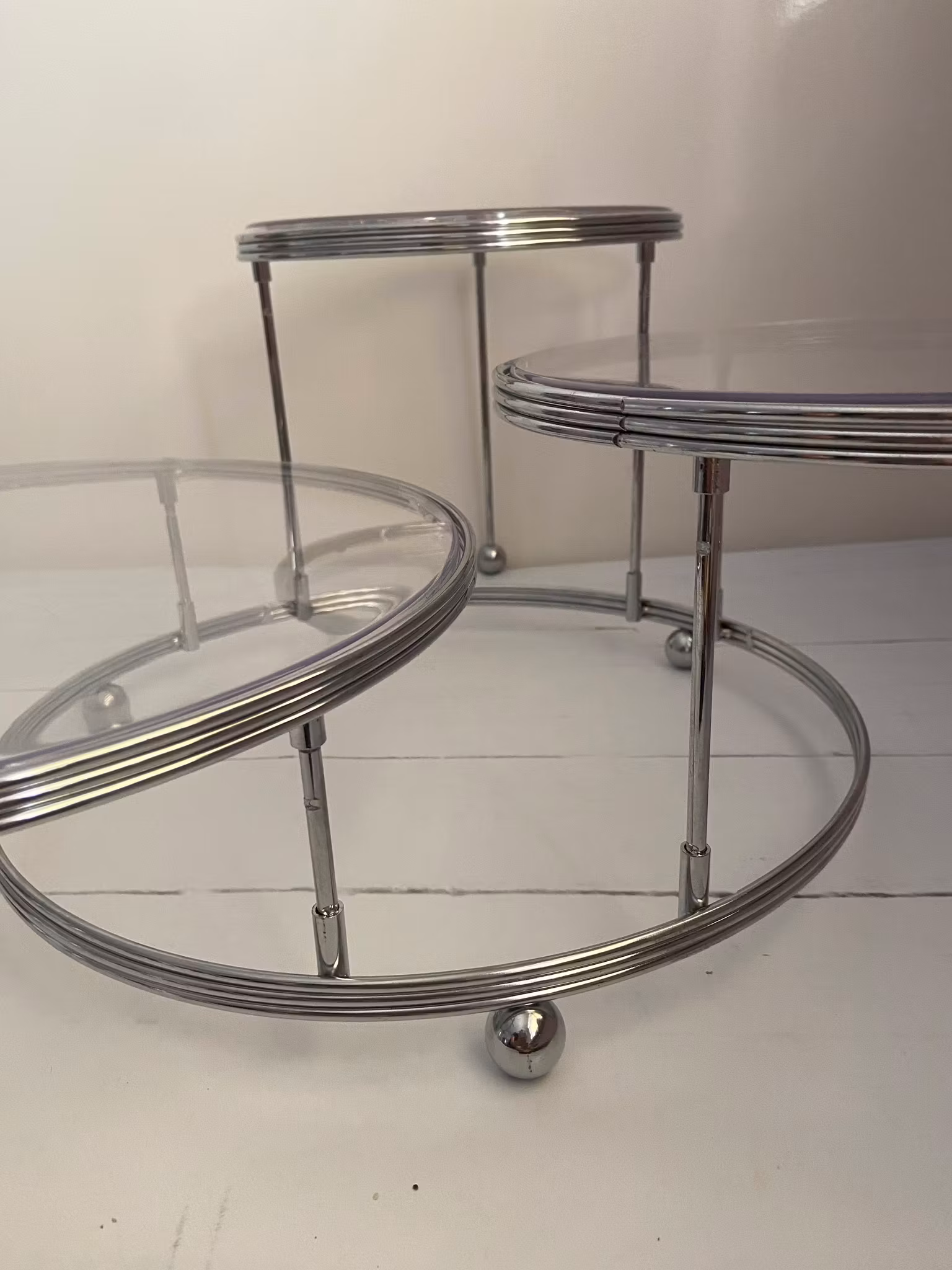 Mycket stilrent och elegant tårtfat i tre nivåer. Perfekt för bröllop, födelsedagar, event eller dessertbord.
