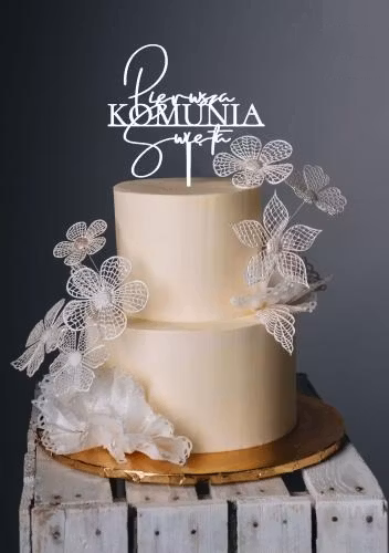 Topper -PIERWSZA KOMUNIA ŚWIĘTA akryl 129 kr Fårg gold mirror silver Vit I lager. Lägg i korgen Information Topper av akrylPIERWSZa KOMUNIA ŚWIĘTA , modern typsnittStorlek ca: 12x 10,1cm, ej ätbar