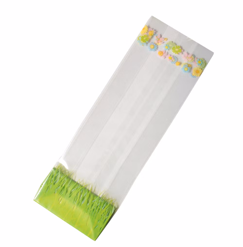 är perfekta för att förpacka och presentera små bakverk. Dessa påsar är gjorda av transparent, prasslande cellofanfolie som är lätt att använda. De har en stilfull design med pastellblommor som kommer att dekorera dina skyltfönster och locka kundernas uppmärksamhet. Påsarna har en förstyvad botten som ger dem stadga och förhindrar att dina produkter viker sig.