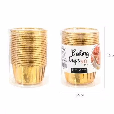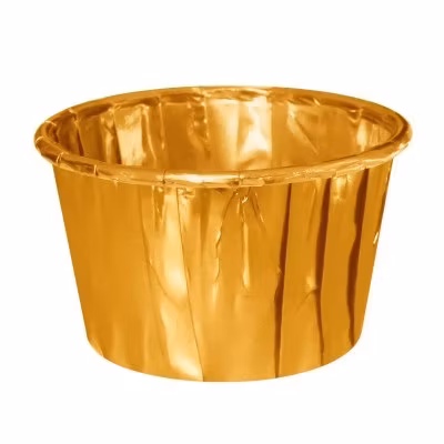 Cupcake Wrapper Guld Metallic är ett paket med 20 stycken guldfärgade muffinsformar med blank yta.