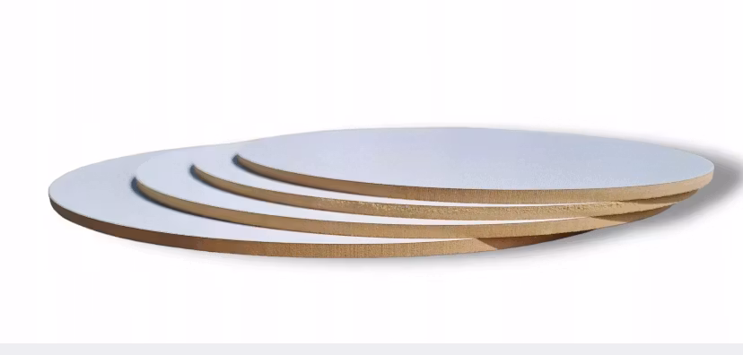 Väldigt stabil tårtbricka, som är tillverkad av träliknande HDF skiva