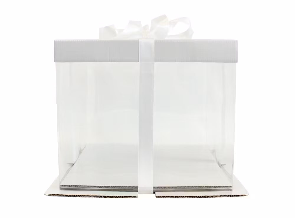 En elegant genomskinlig tårtkartong gjord av plast och kartong