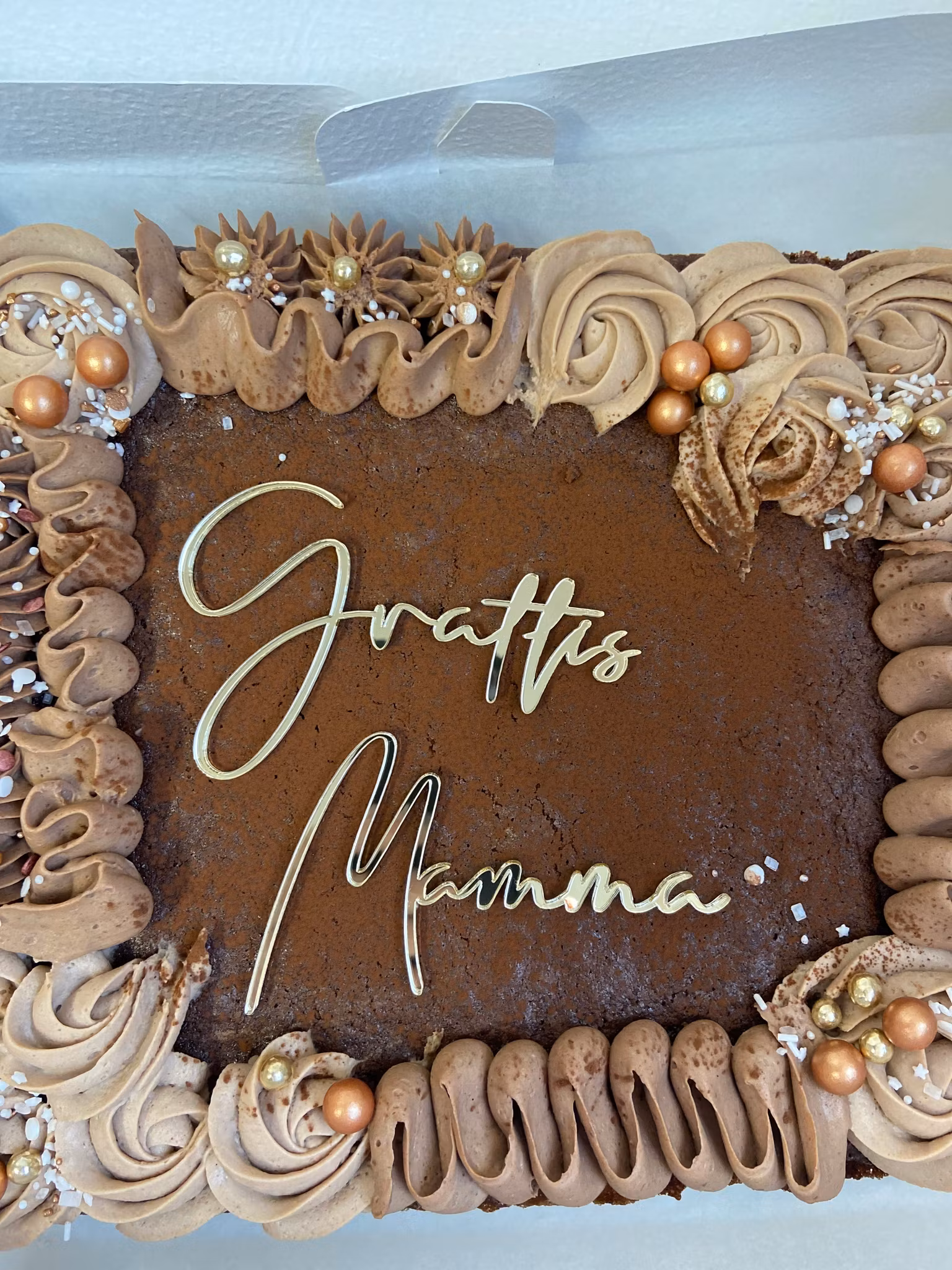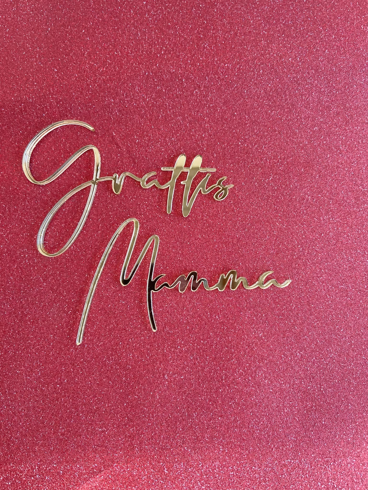 Cake topper MAMMA , guld 69 kr I lager. Lägg i korgen Information En guld akryl topper till tårtan, ellegant typsnittStorlek (bred) 10 cm, ej ätbar