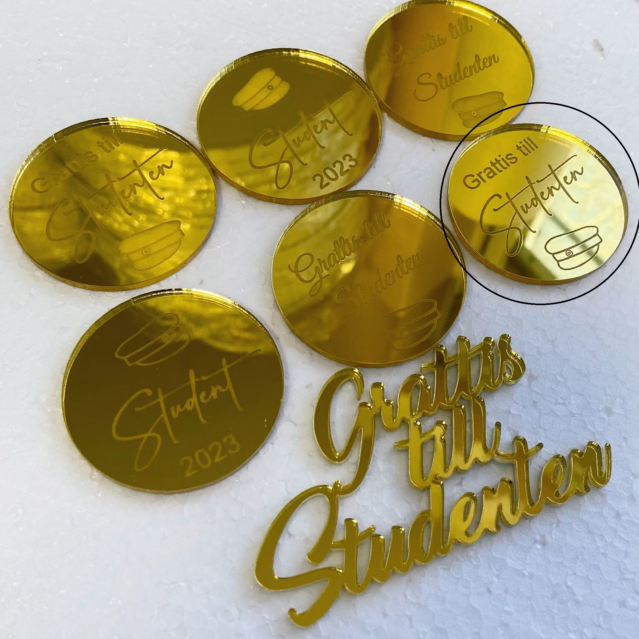 En fantastisk akryl decor för att dekorera cupcakes, cakesickles, kakor toll Studenten !
