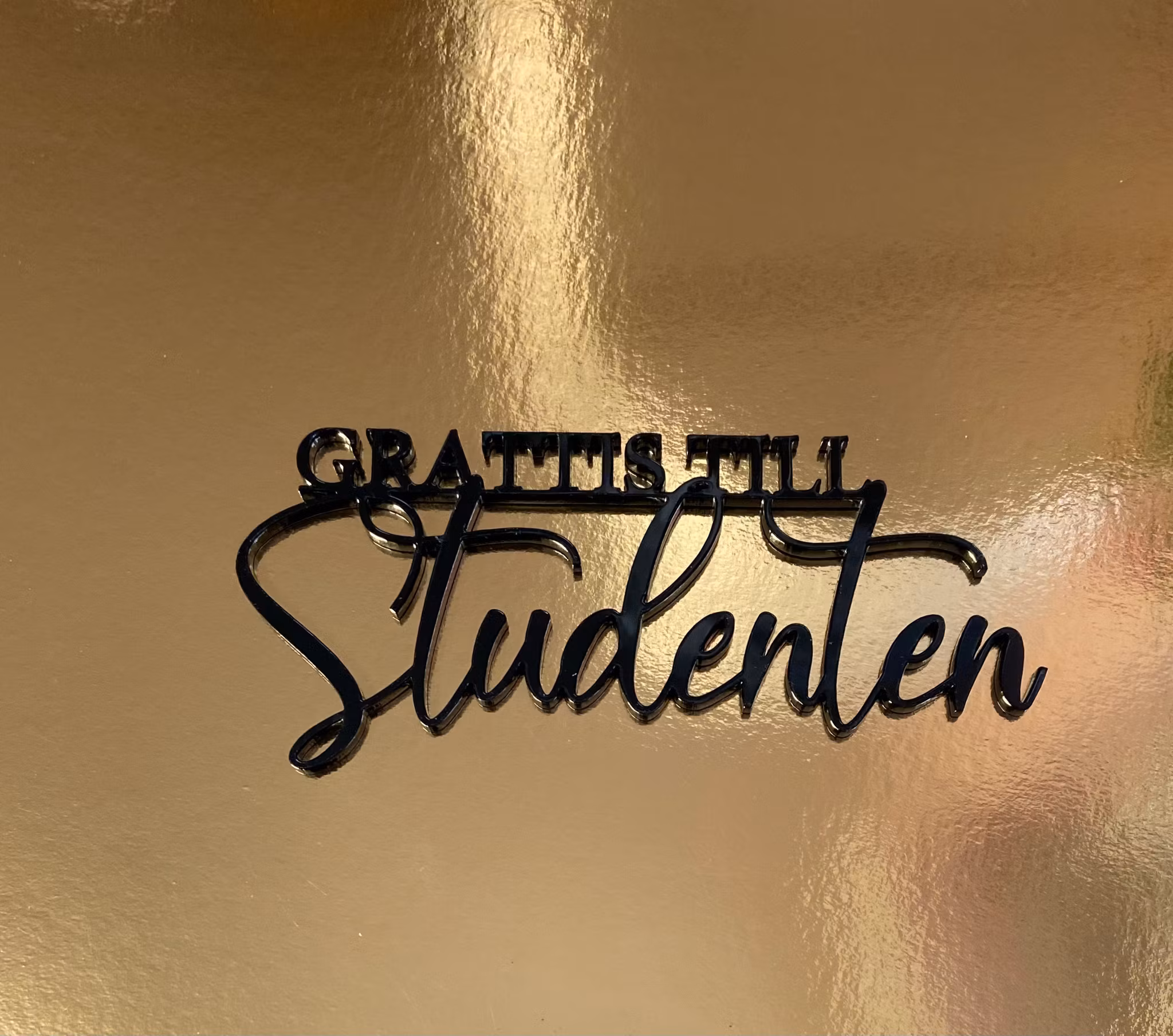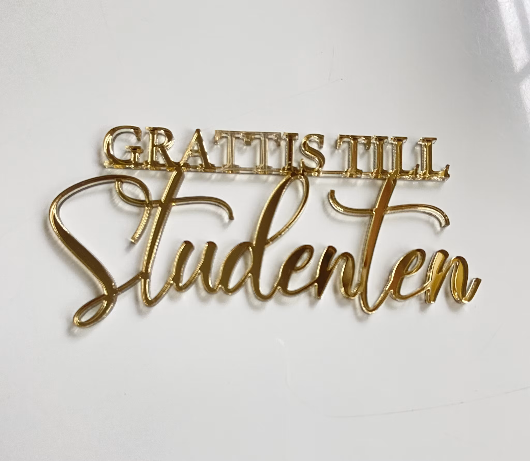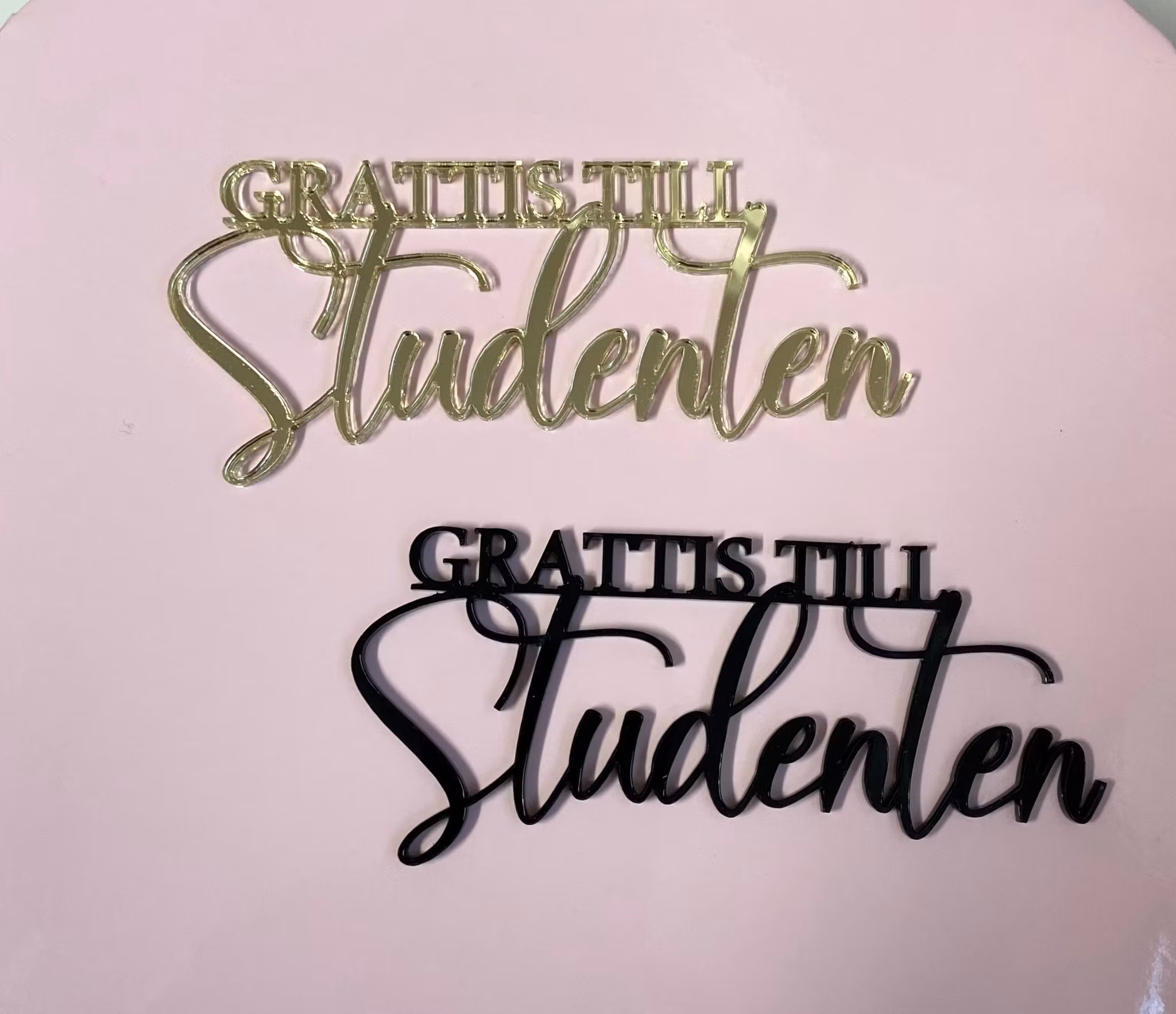 Akryl Topper /dekor GRATTIS TILL Studenten 99 kr Färg Guld mirror Svart Silver I lager. Lägg i korgen Information Lyxig topper av akryl: Grattis till Studenten (utan pinne)tre färger att välja påStorlek ca: 12x5,7 cm, ej ätbar
