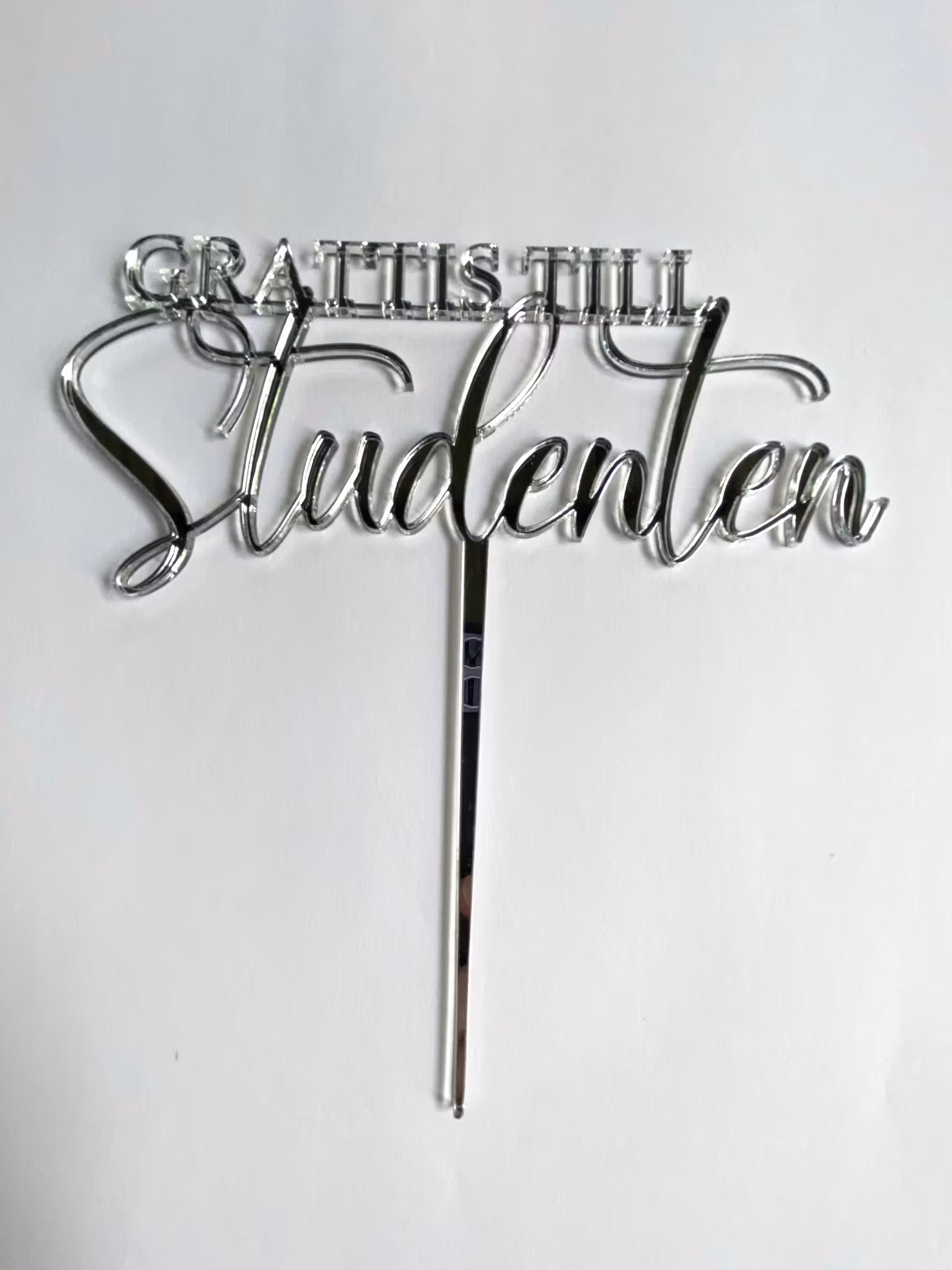 Cake topper GRATTIS TILL Studenten / 10 cm, silver 129 kr I lager. Lägg i korgen Information En guld akryl topper till tårtan, ellegant typsnittStorlek (bred) 10 cm, ej ätbar